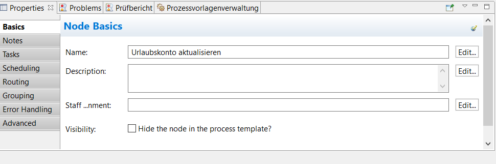 Nun wechseln wir wieder zum Process Template Editor und beginnen mit der Zuweisung von Bearbeitern.