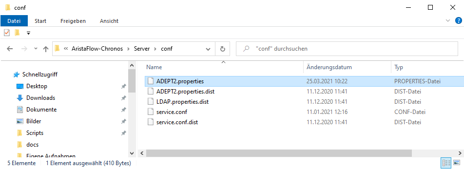 - Die Datei für den Aristaflow Server speichern Sie im Installationsverzeichnis unter dem Pfad ...\Aristaflow-Chronos\Server\conf mit folgenden Daten:
