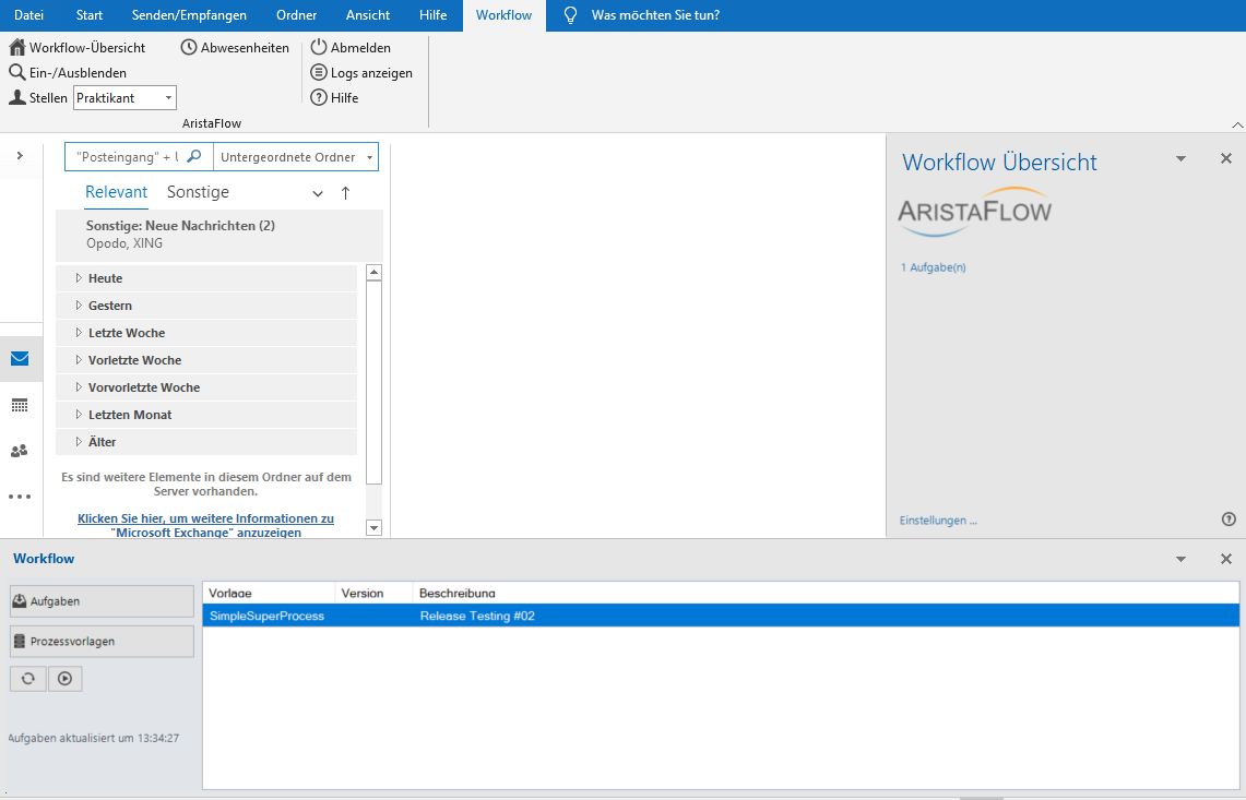 Klicken Sie auf Startbare Prozesse (rechts im Tab Workflow Übersicht) und starten Sie eine Prozessvorlage.